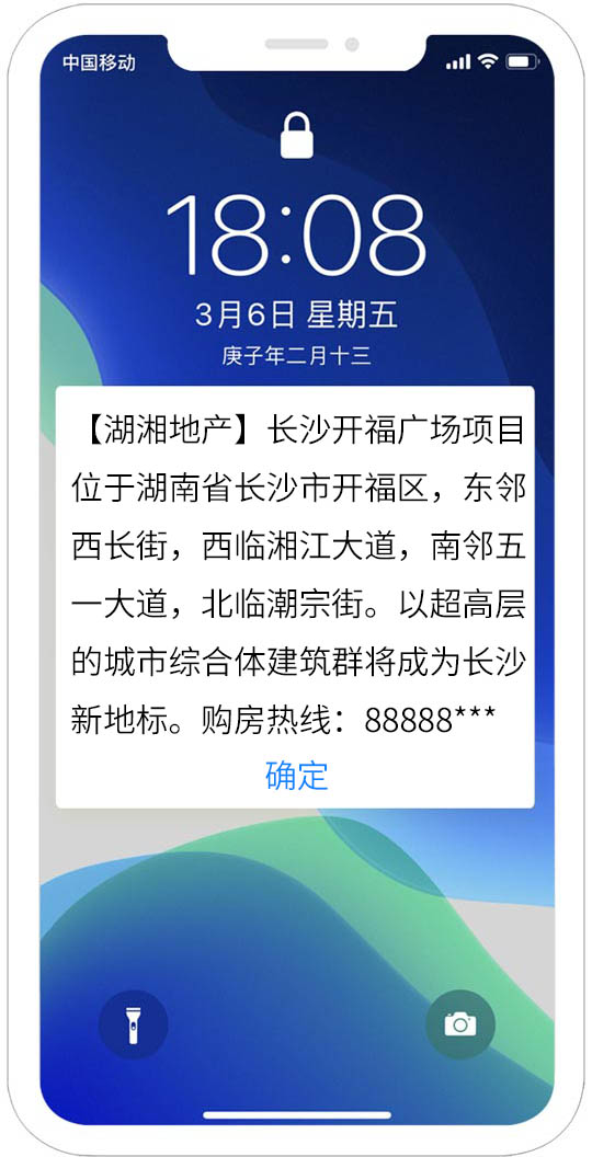 是指用戶在收到閃信群發內容后,無需打開,短信內容直接顯示在用戶手機屏幕上,用戶如果沒有點擊閱讀,則閃信內容一直有顯示,用戶必須點擊才能關閉,真正實現了高閱讀率、高到達率!提升了用戶對產品的轉化率!